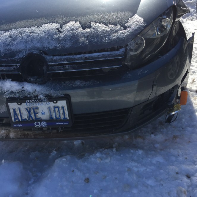 A small car accident with no injuries – and now our car is a write-off. Sigh 😦 It looks like so little damage…but it really was lots of little things that added up to ‘not worth it’ from the insurance companies perspective.